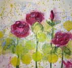met bloemen het motief dik in de verf, terwijl de achtergrond schraal en bijna
